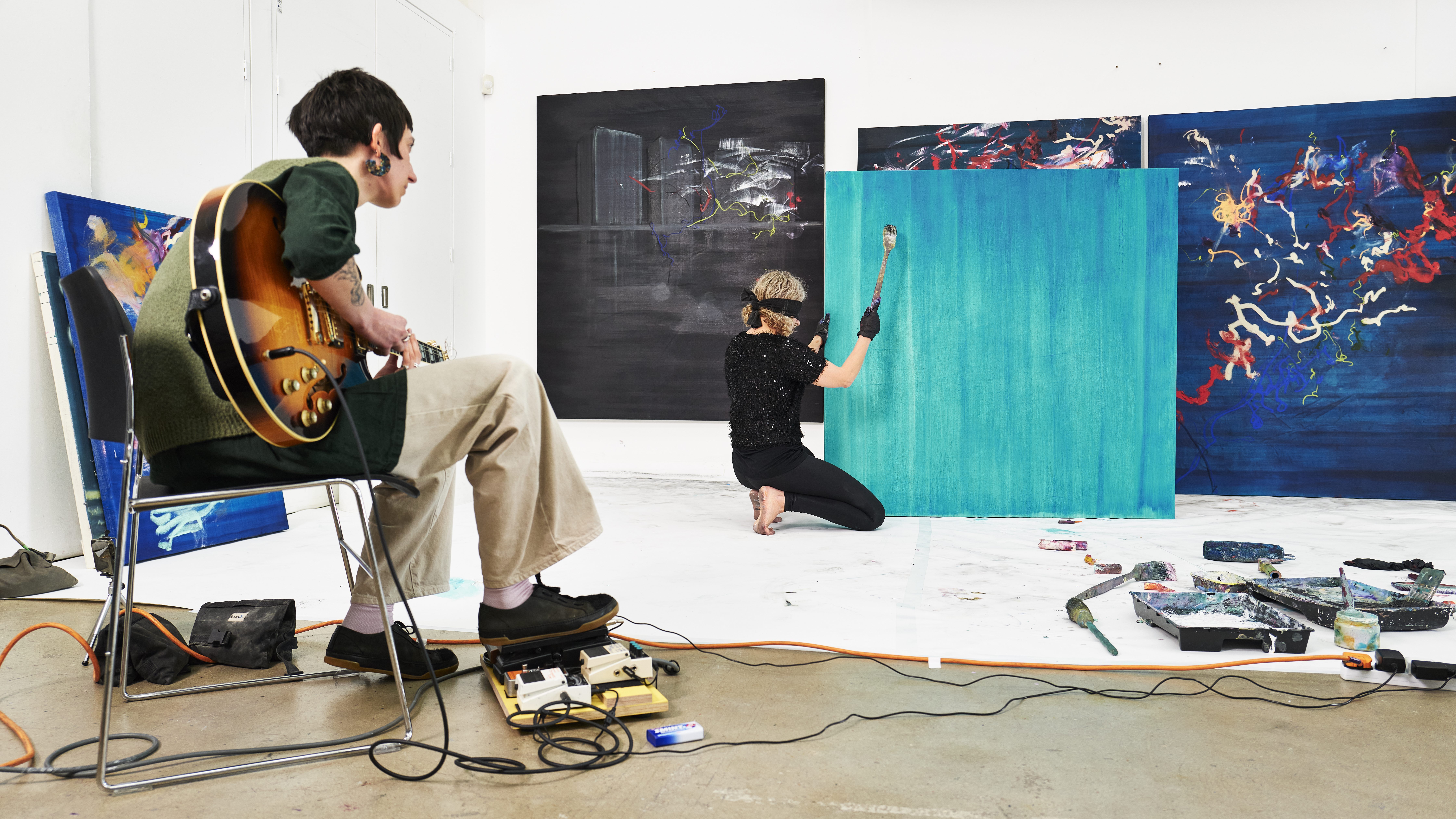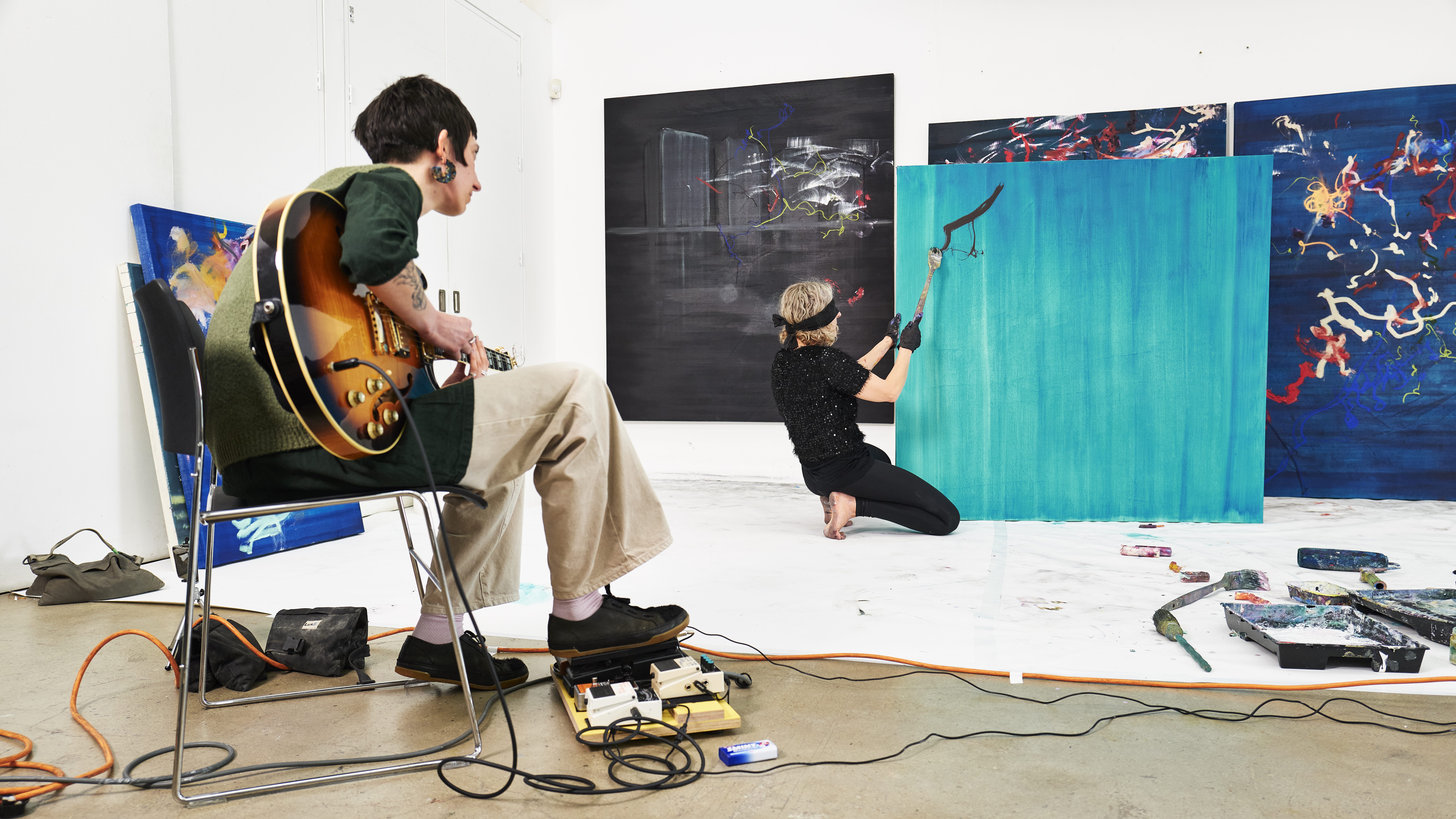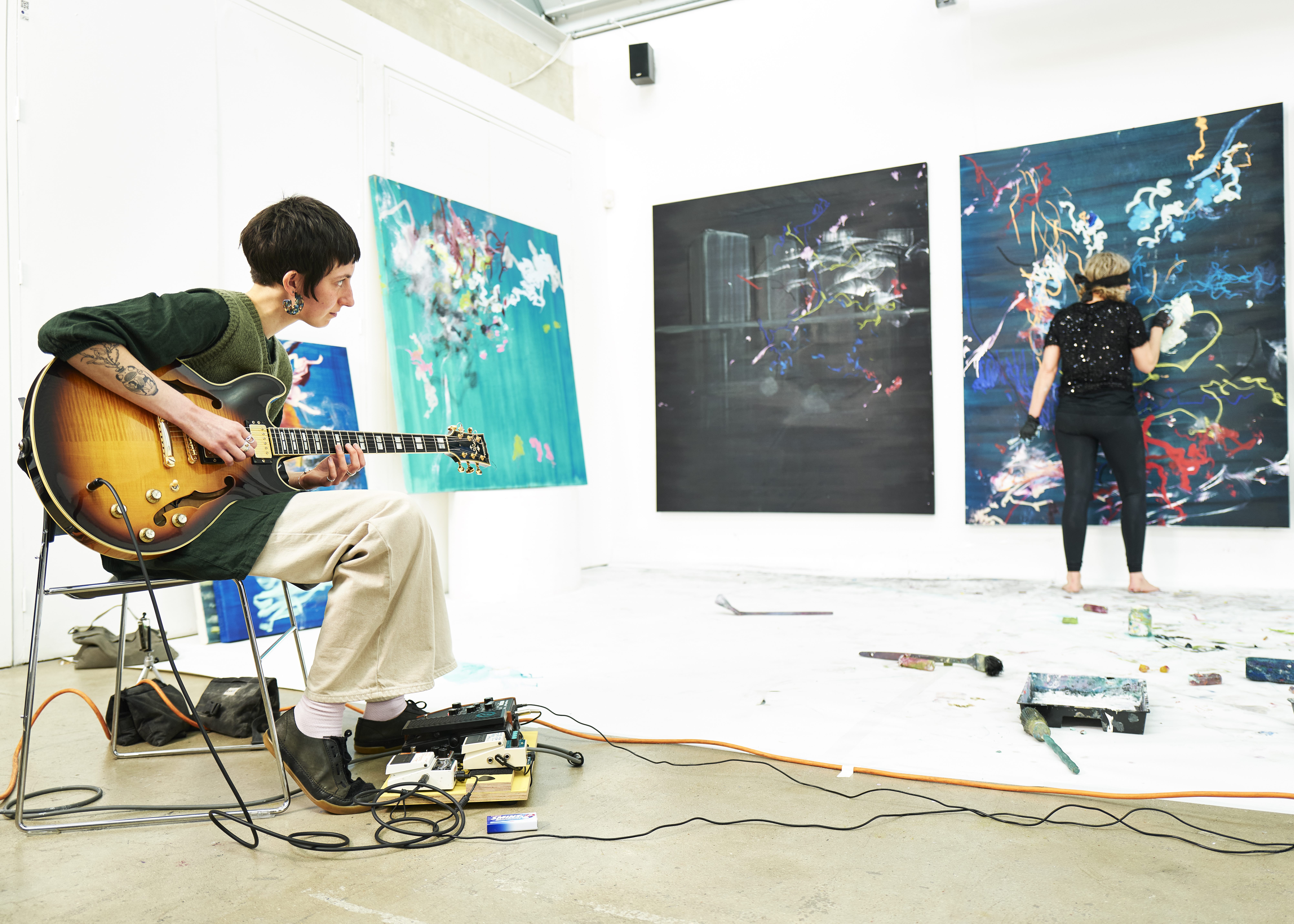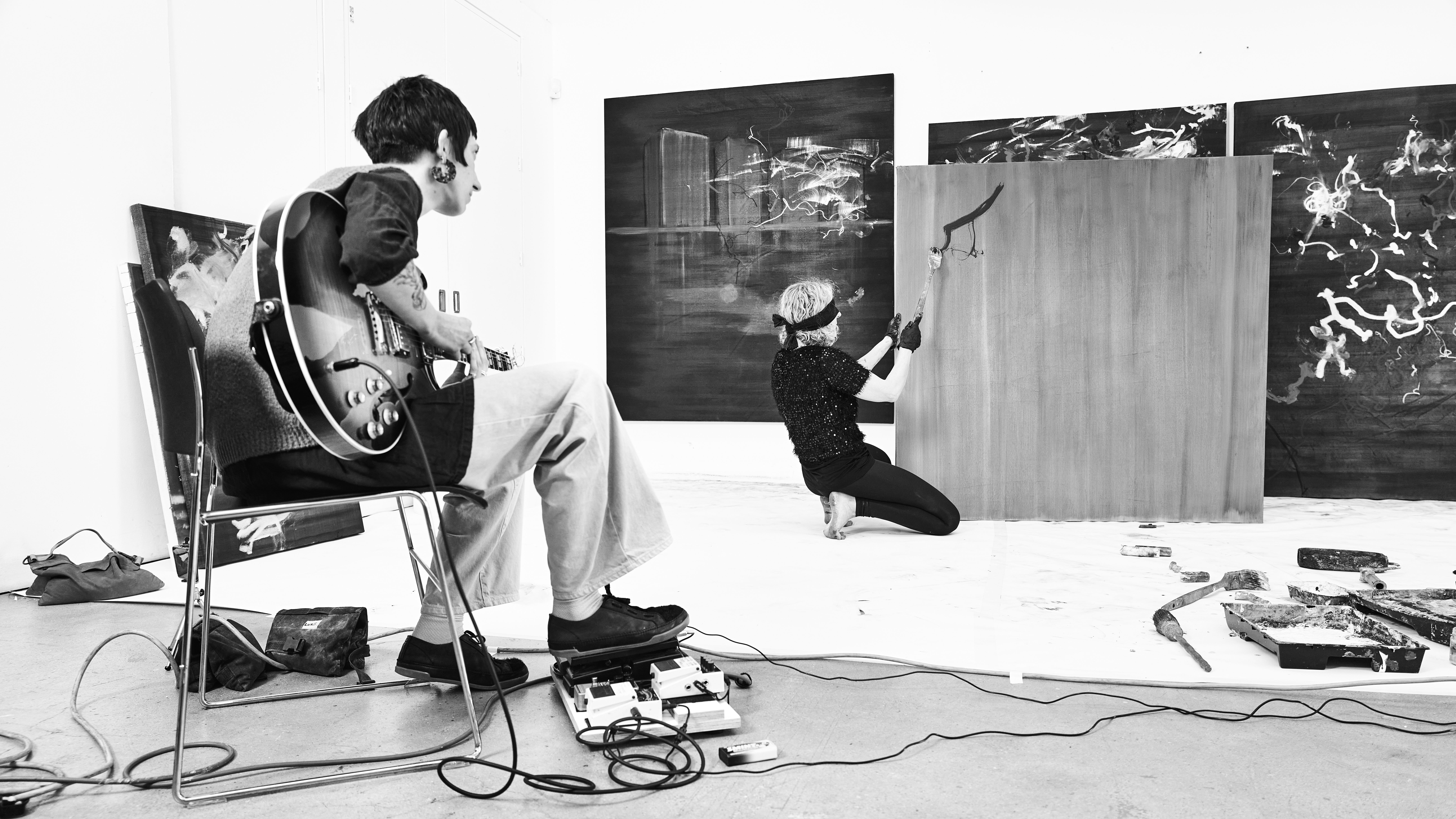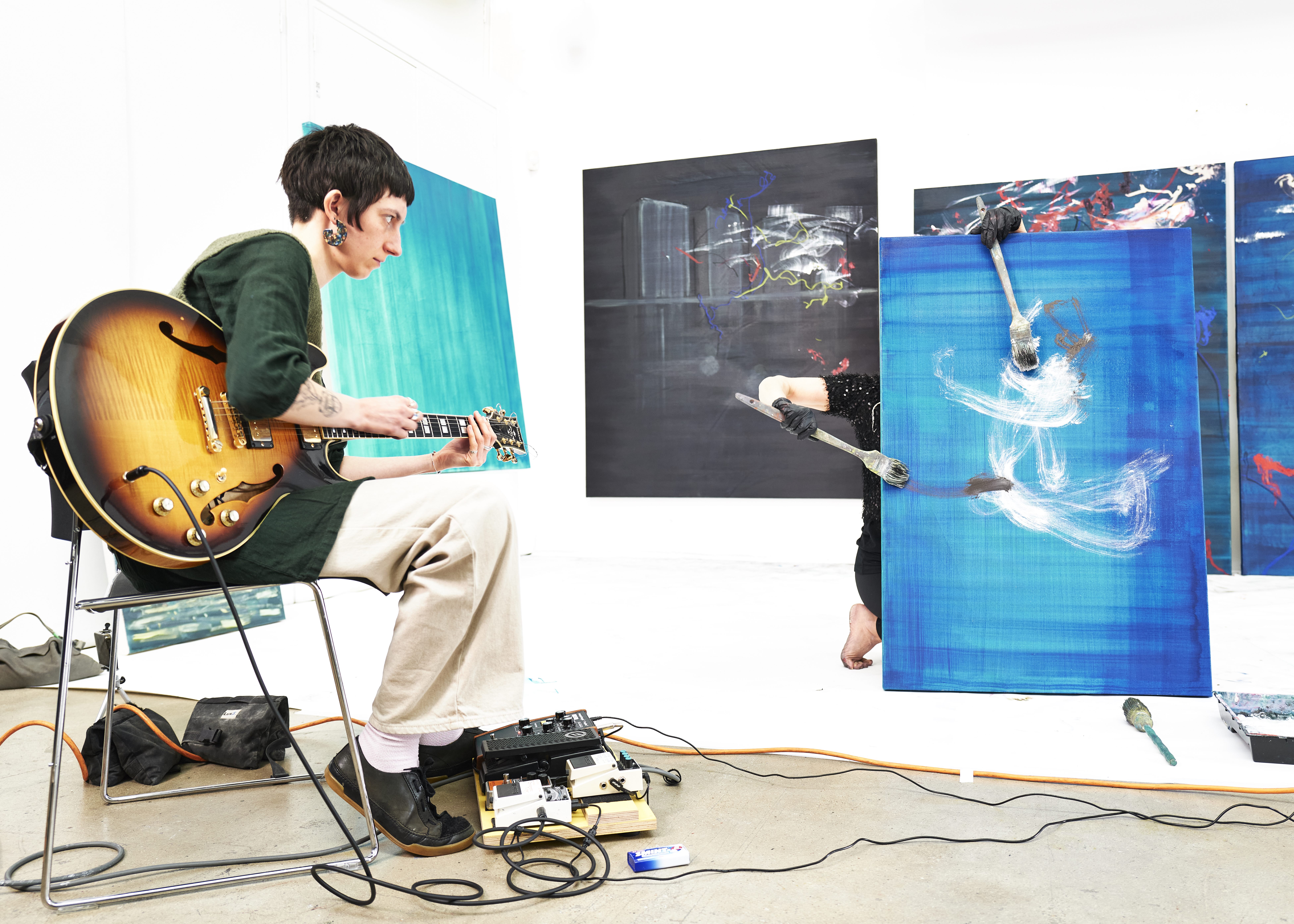 Claire and Peter have been collaborating since 2021, exploring their shared interest in painting and musicking as embodied, entangled movement.