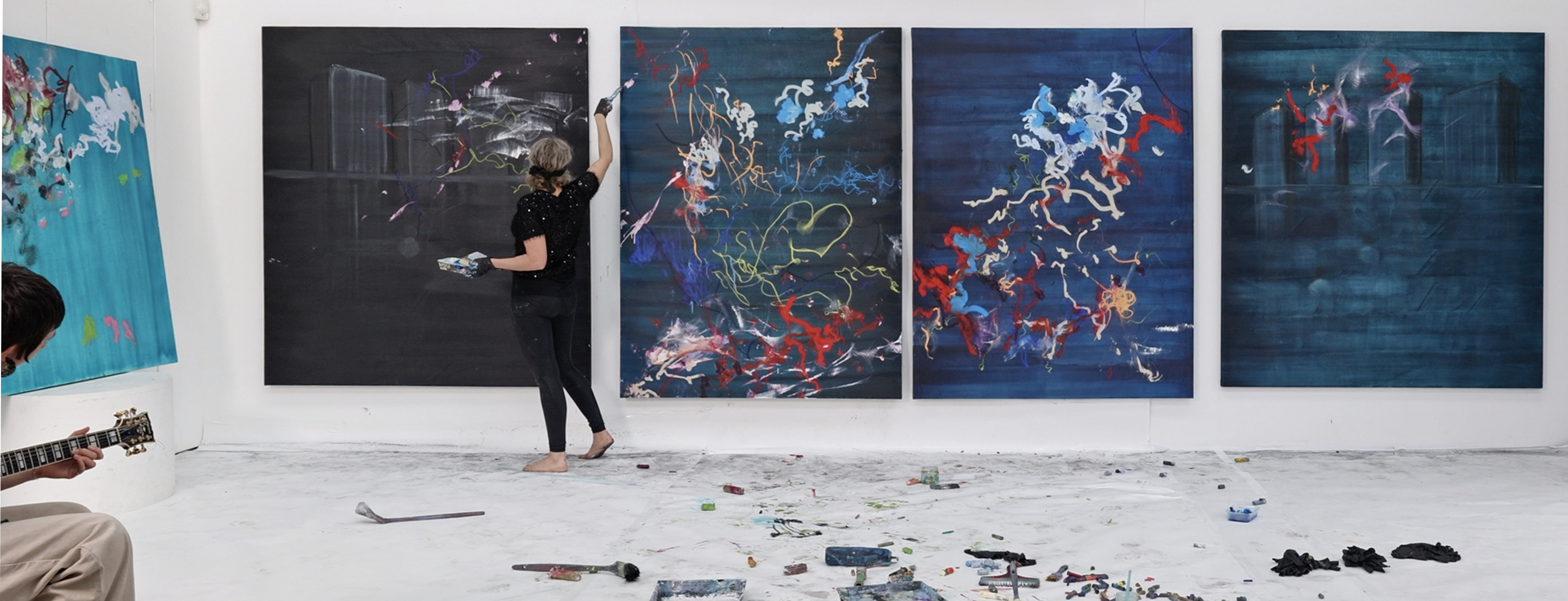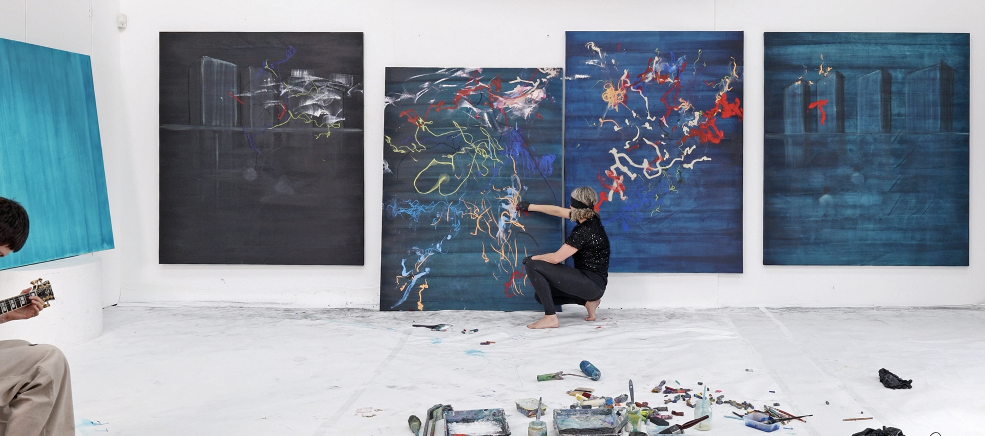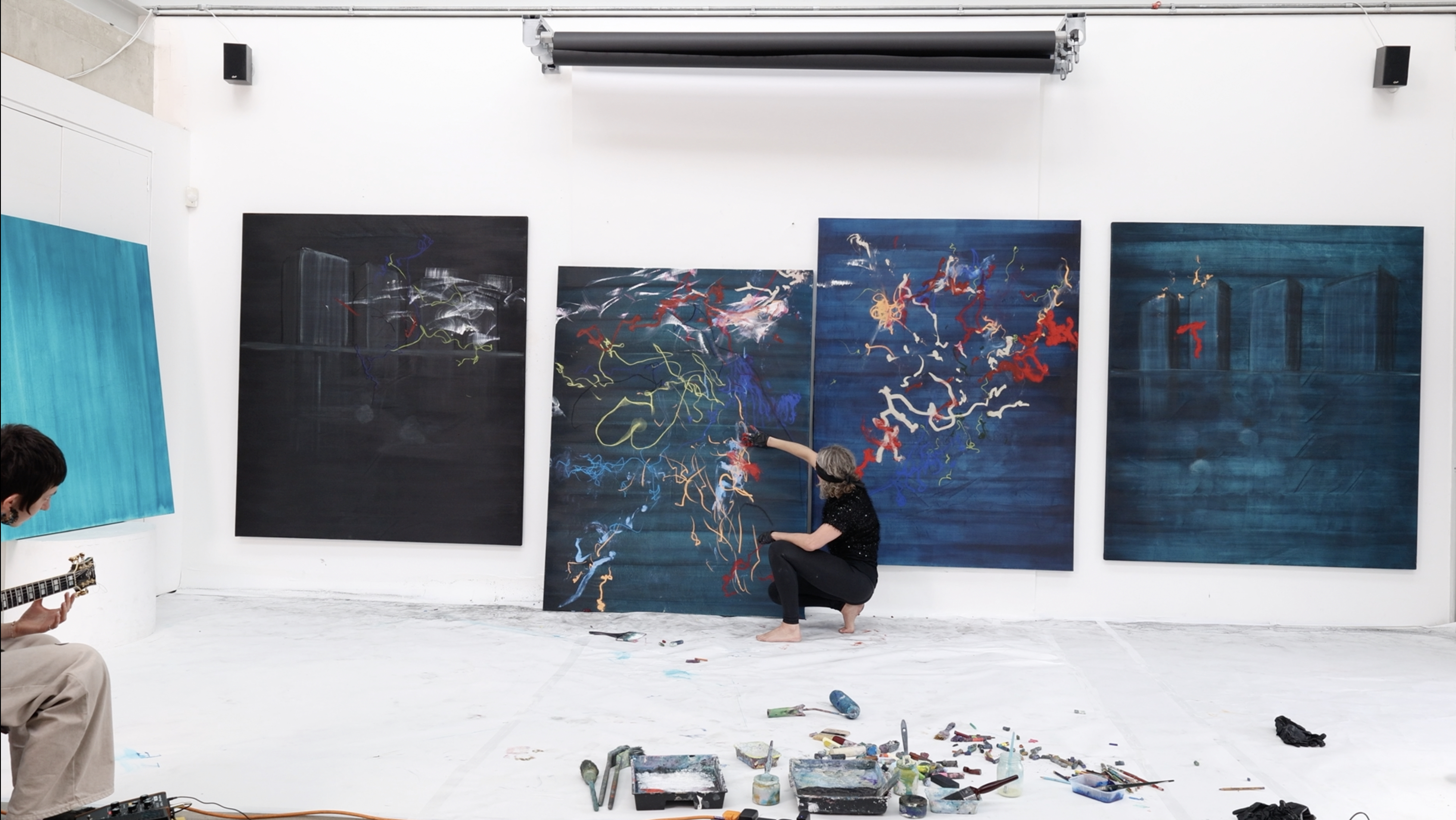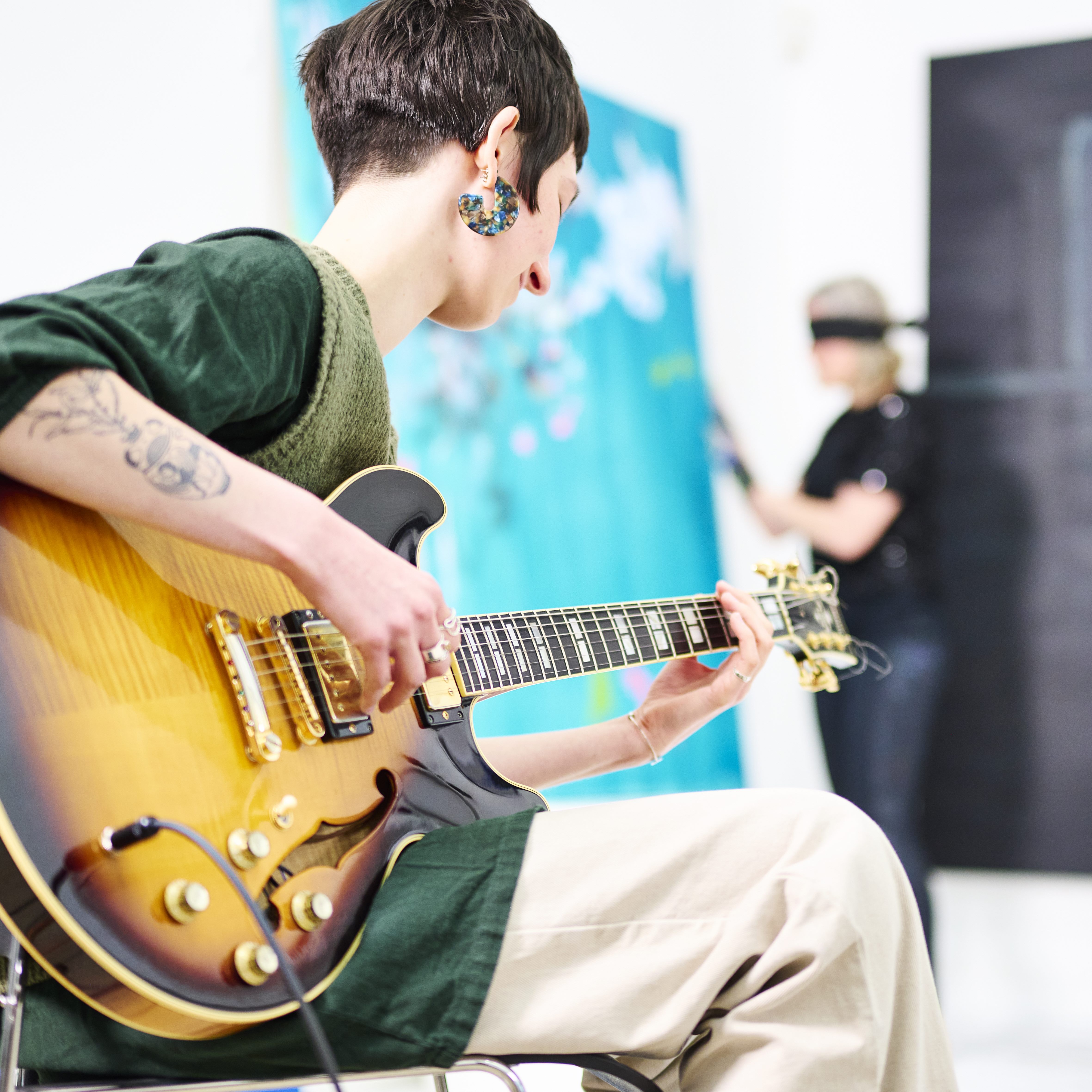 Claire and Peter have been collaborating since 2021, exploring their shared interest in painting and musicking as embodied, entangled movement.