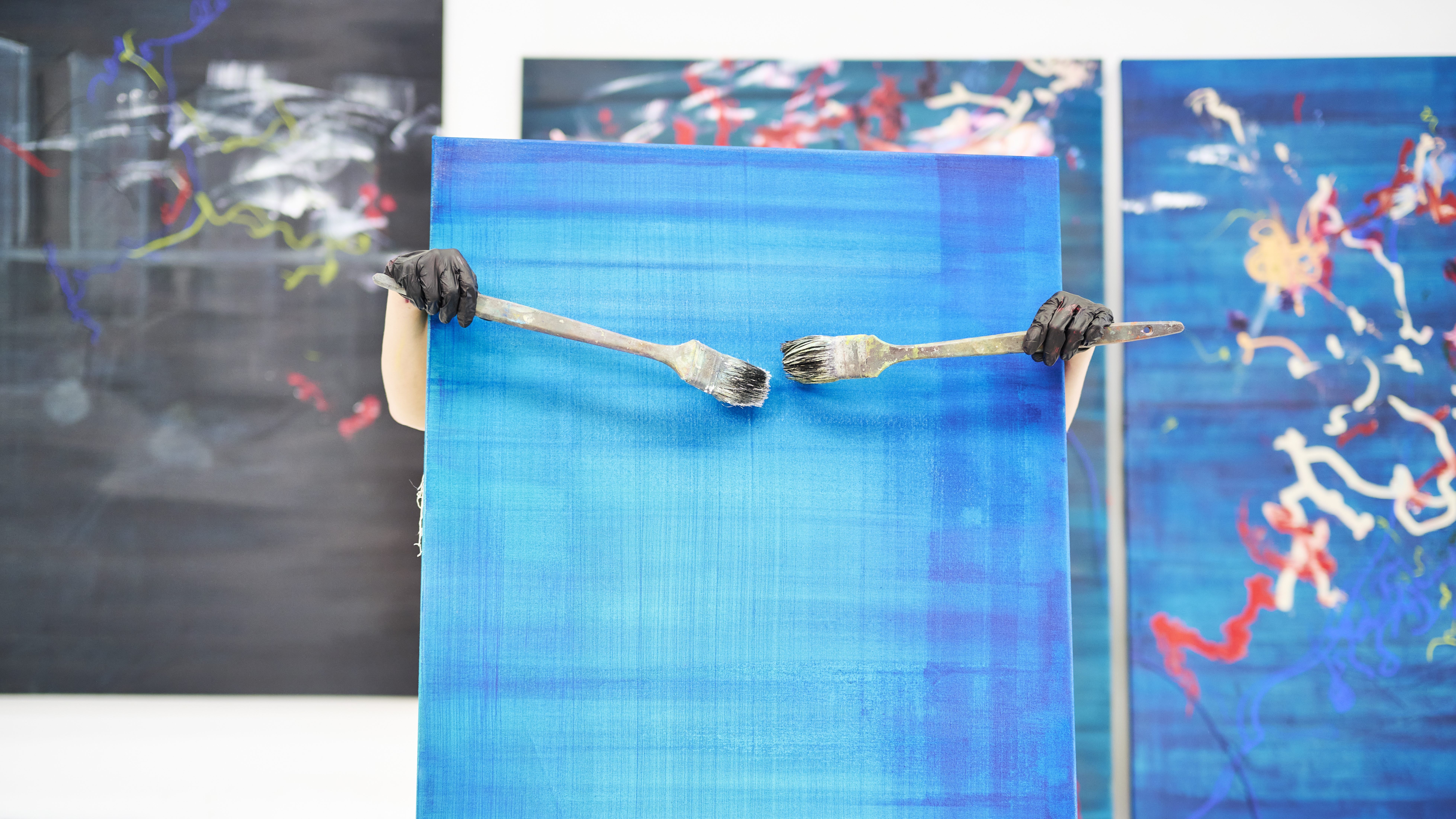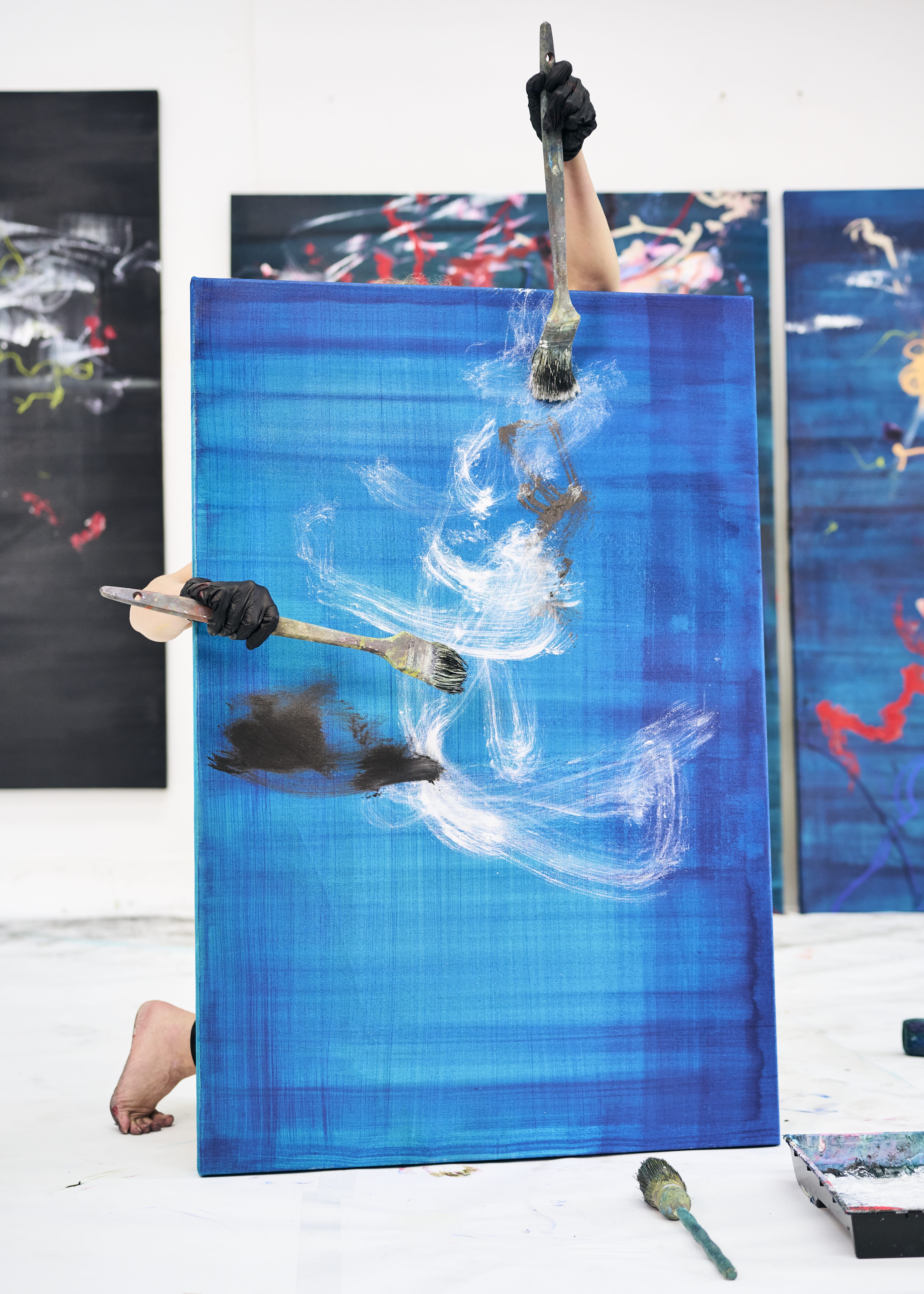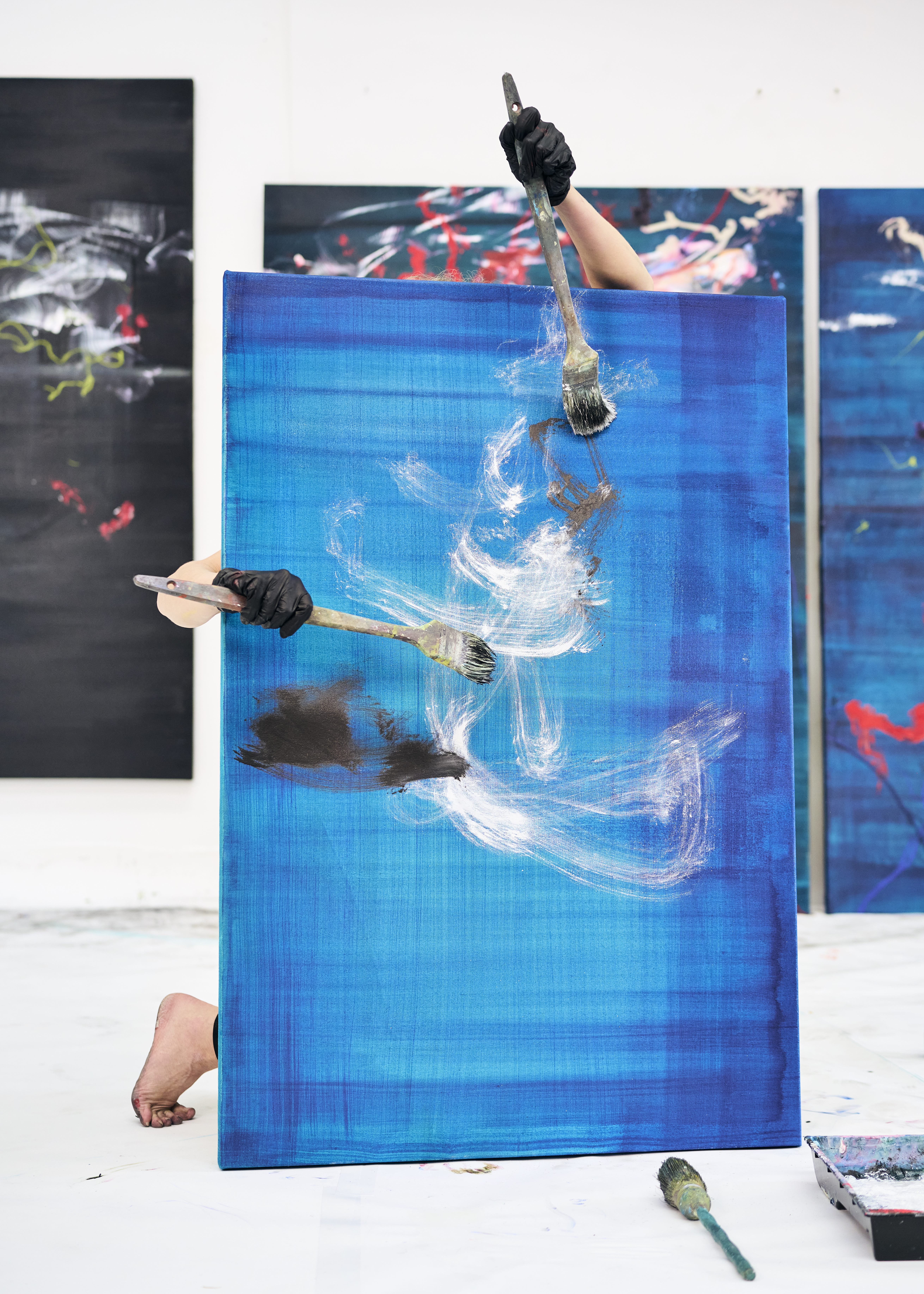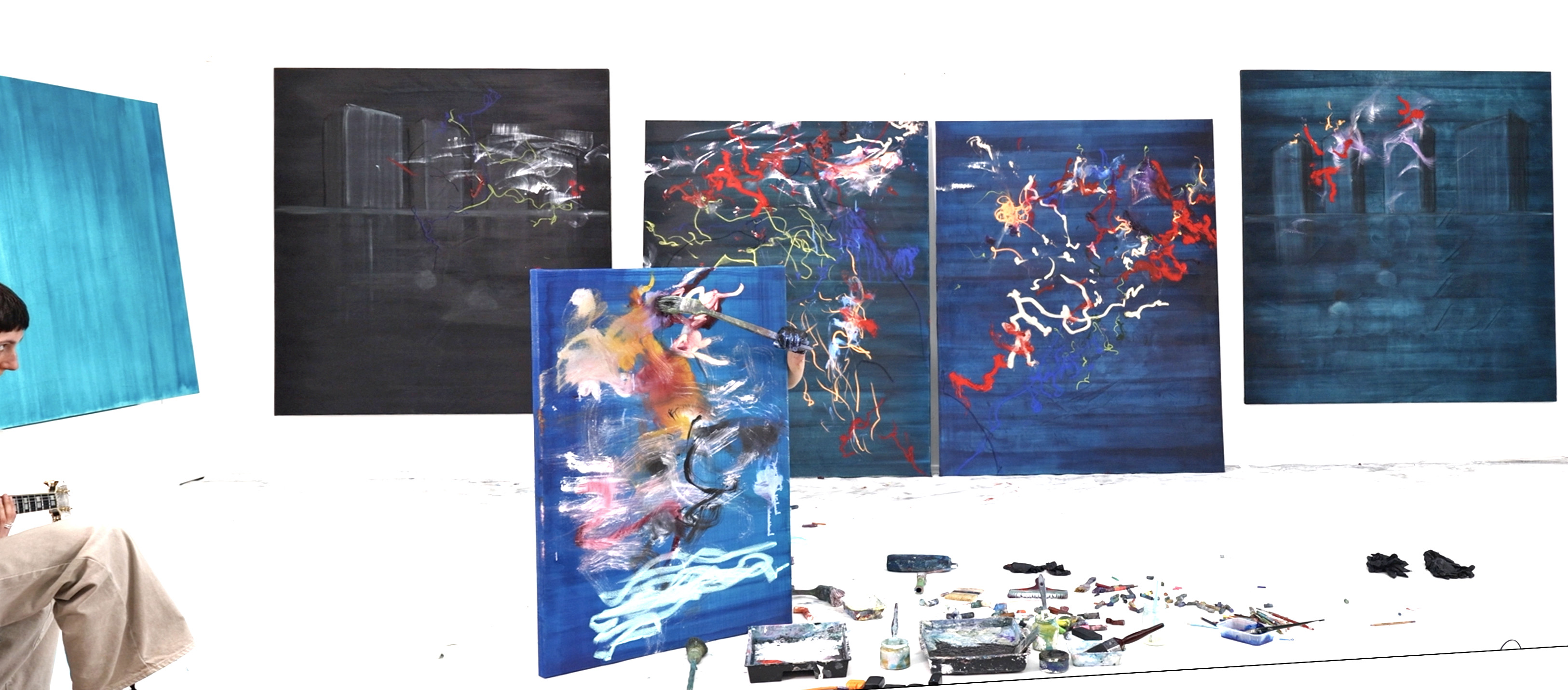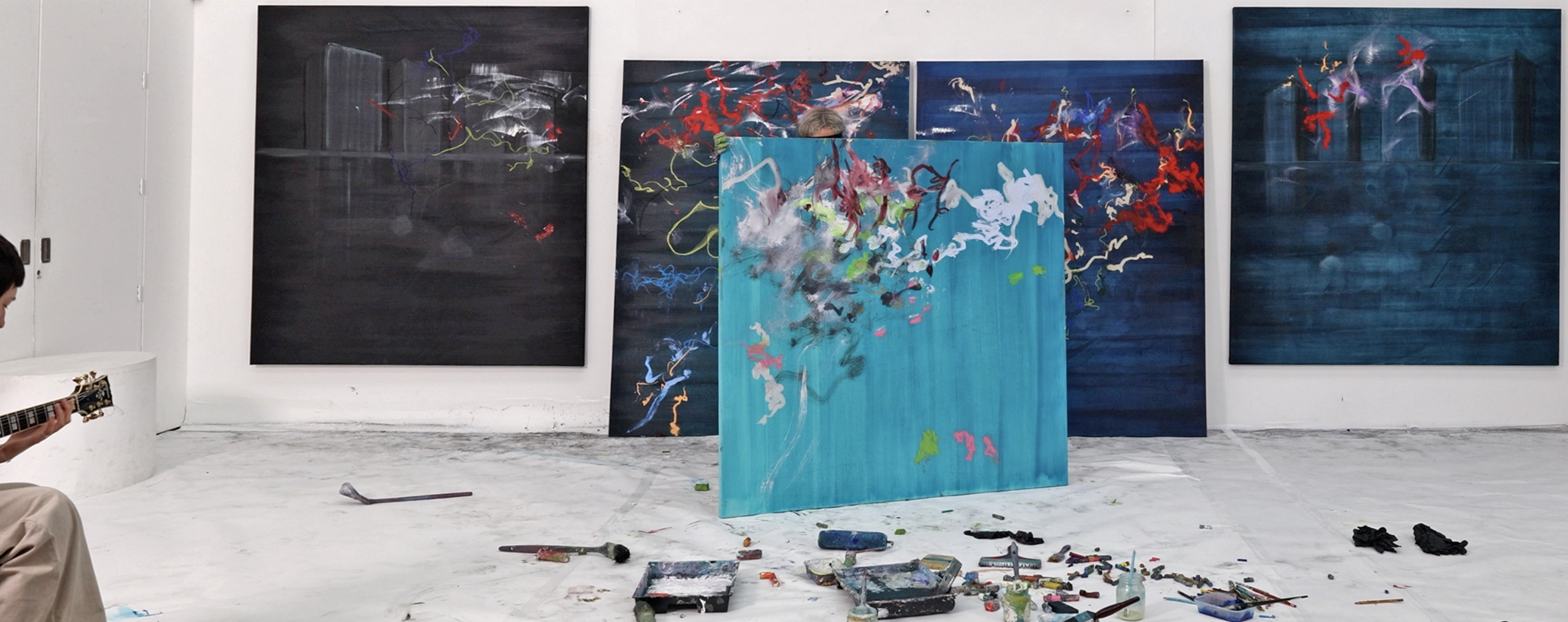 Claire and Peter have been collaborating since 2021, exploring their shared interest in painting and musicking as embodied, entangled movement.