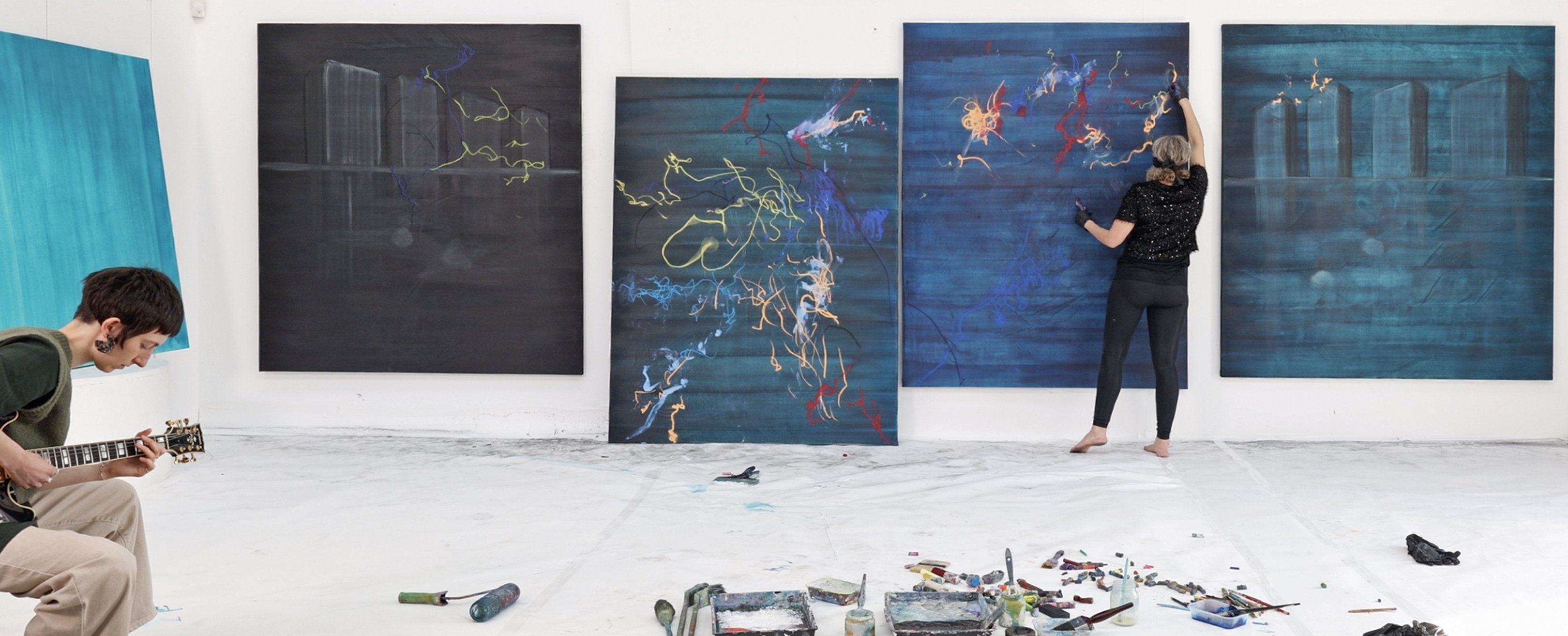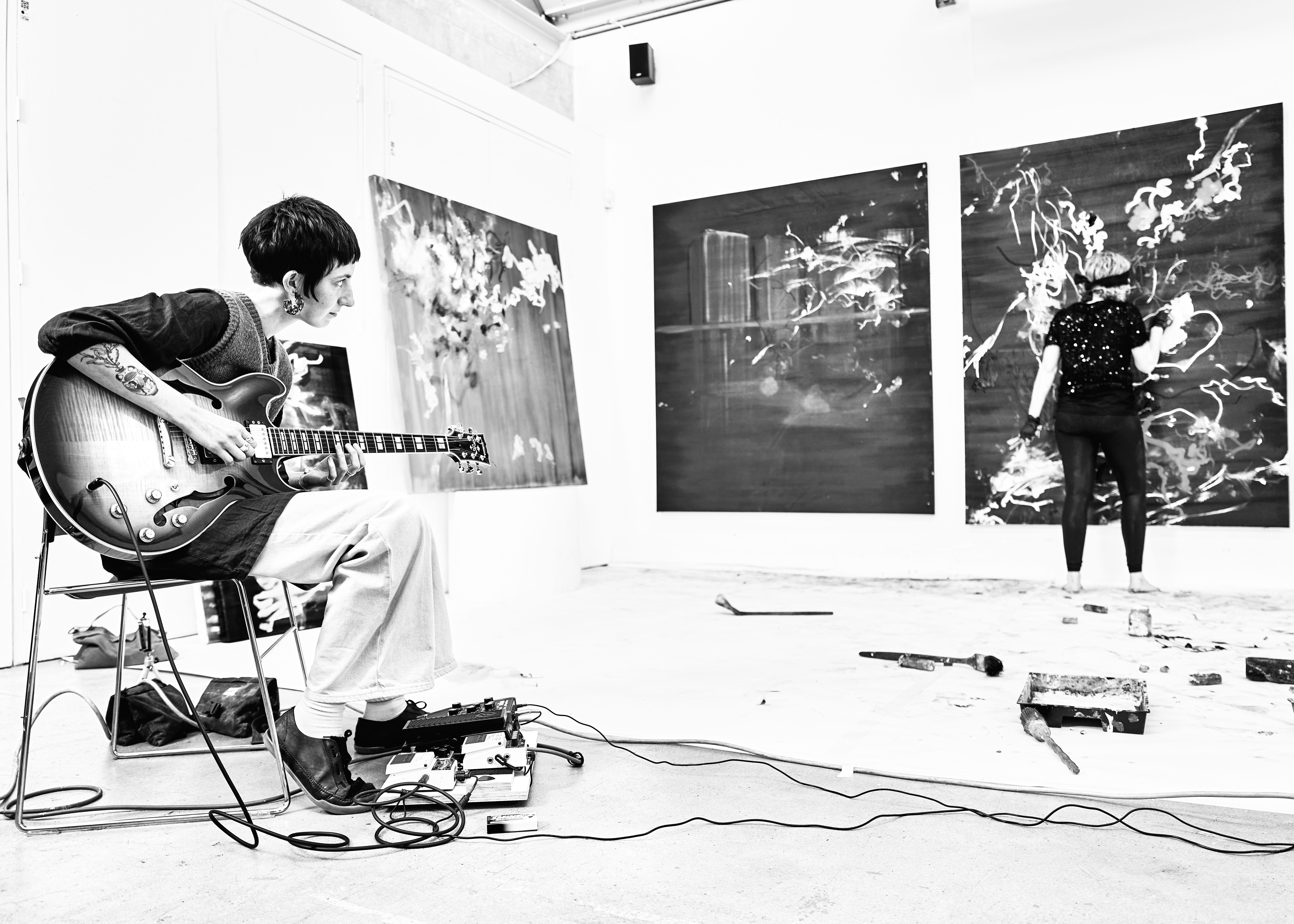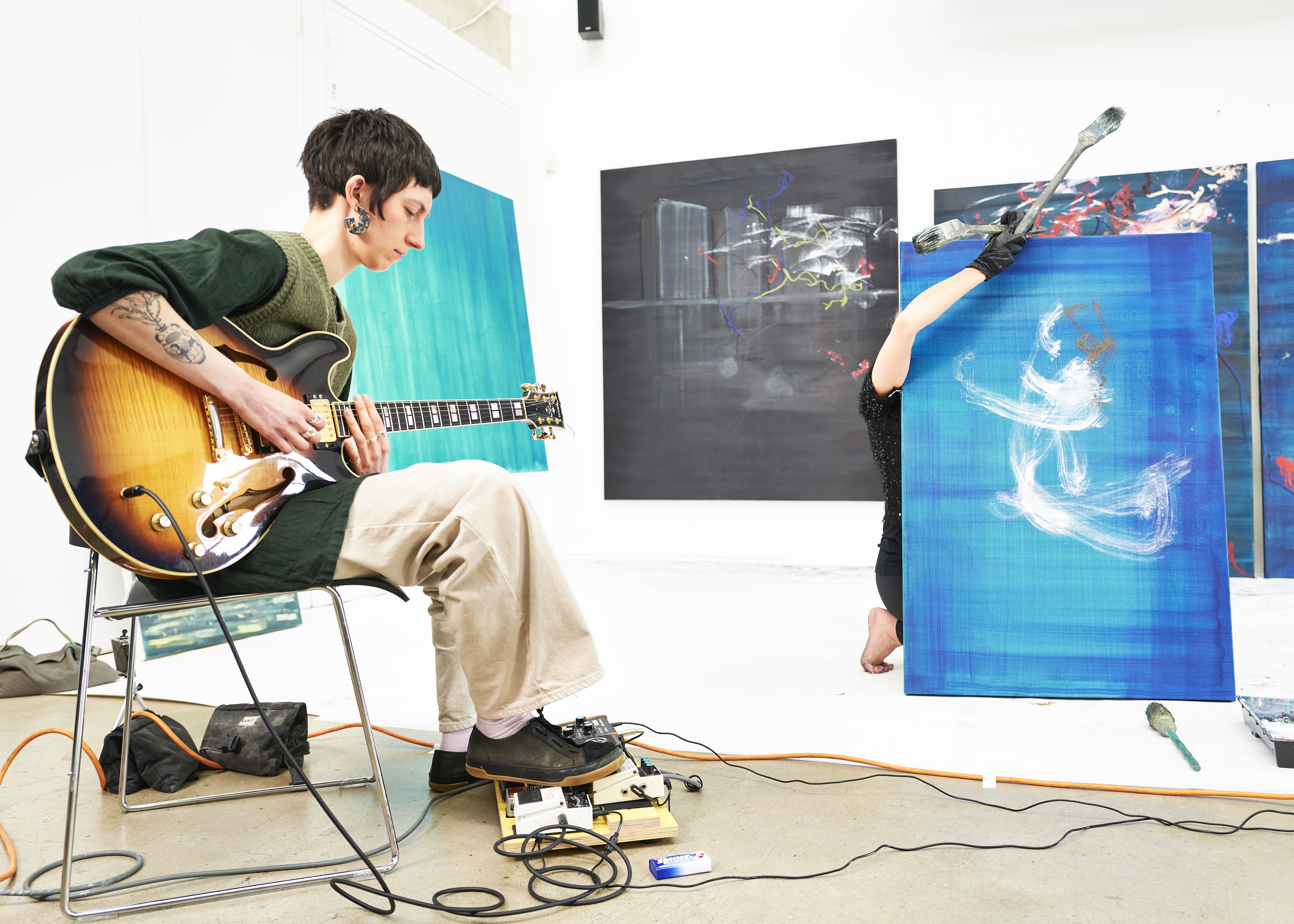 Claire and Peter have been collaborating since 2021, exploring their shared interest in painting and musicking as embodied, entangled movement.