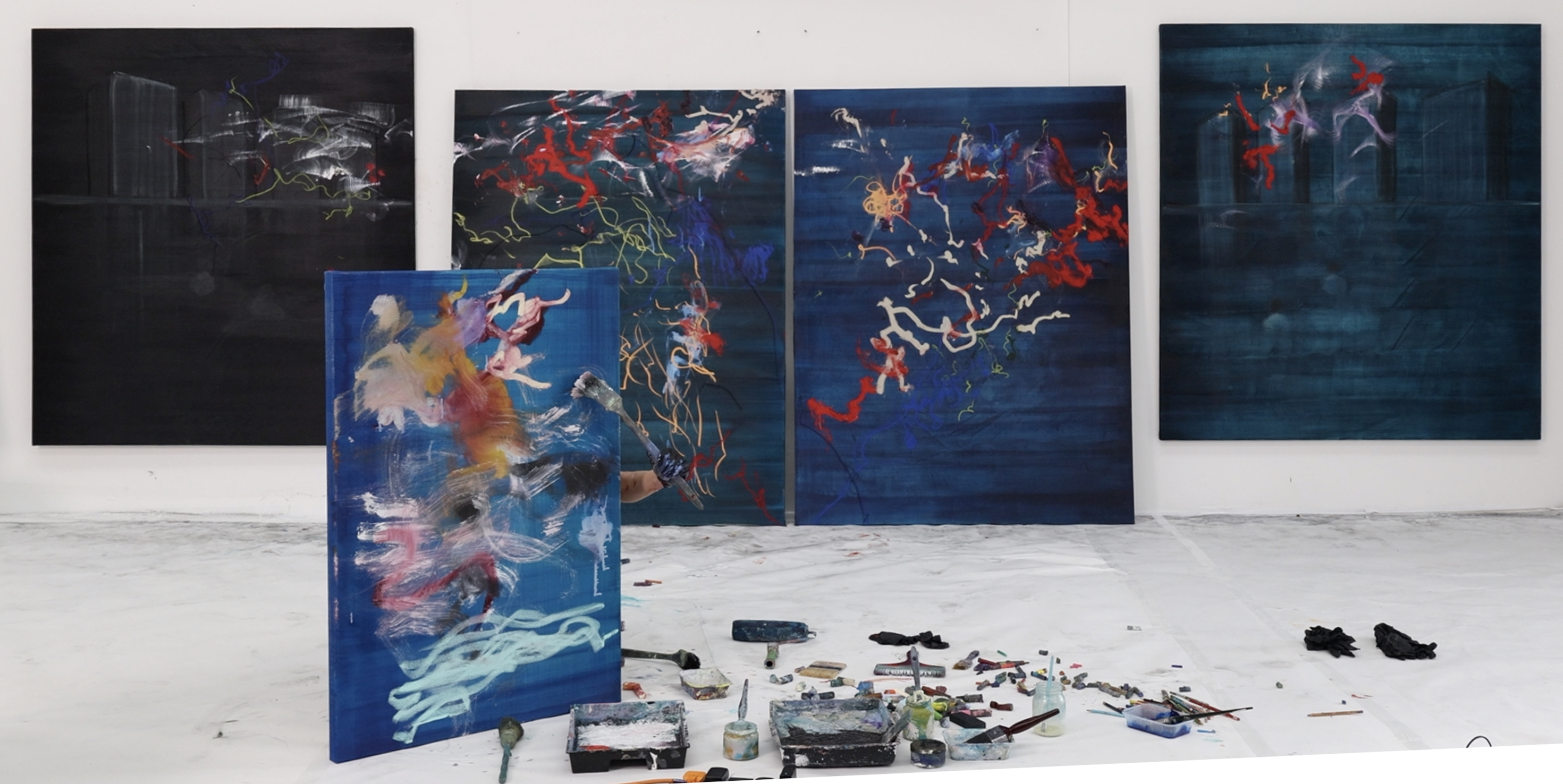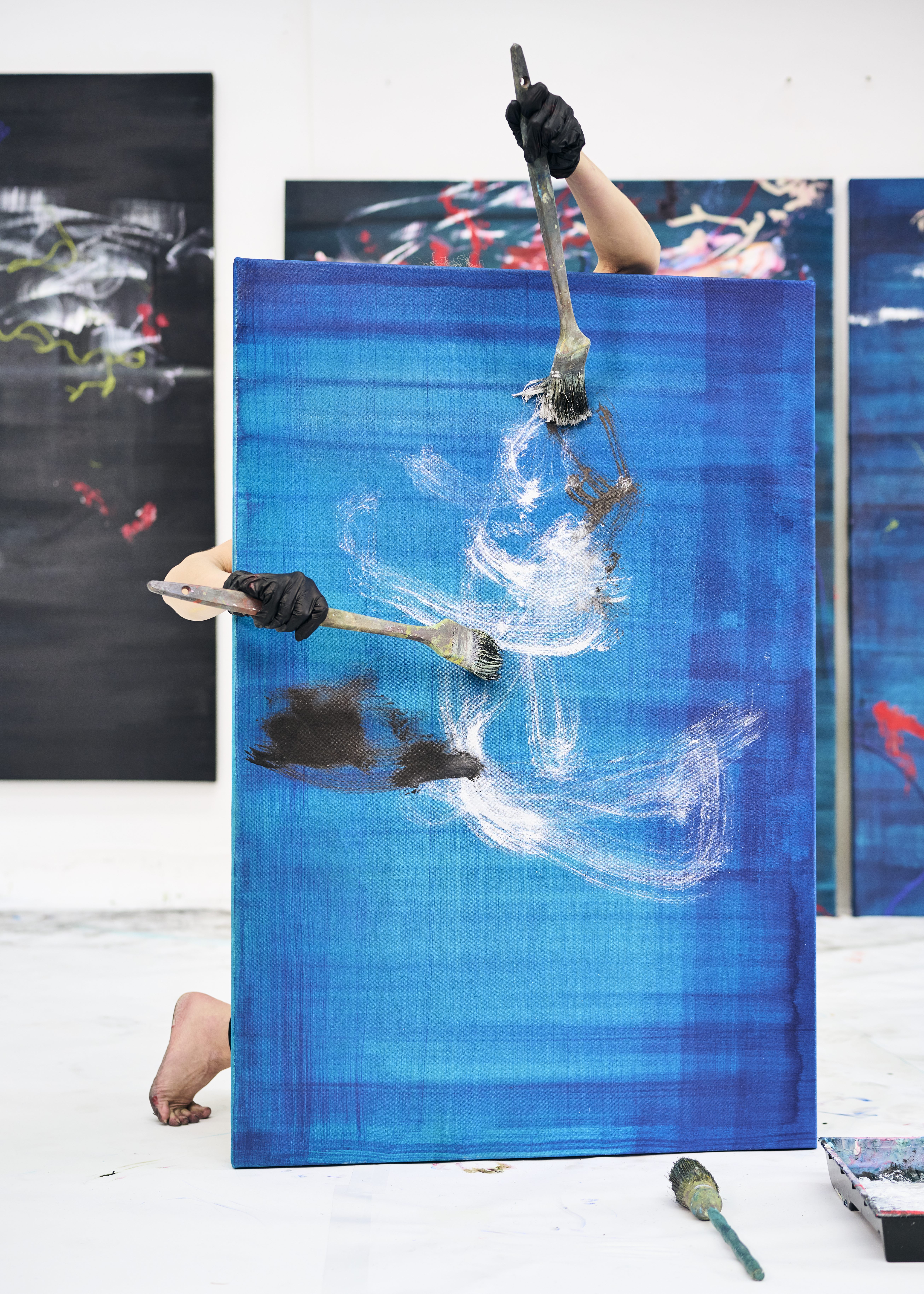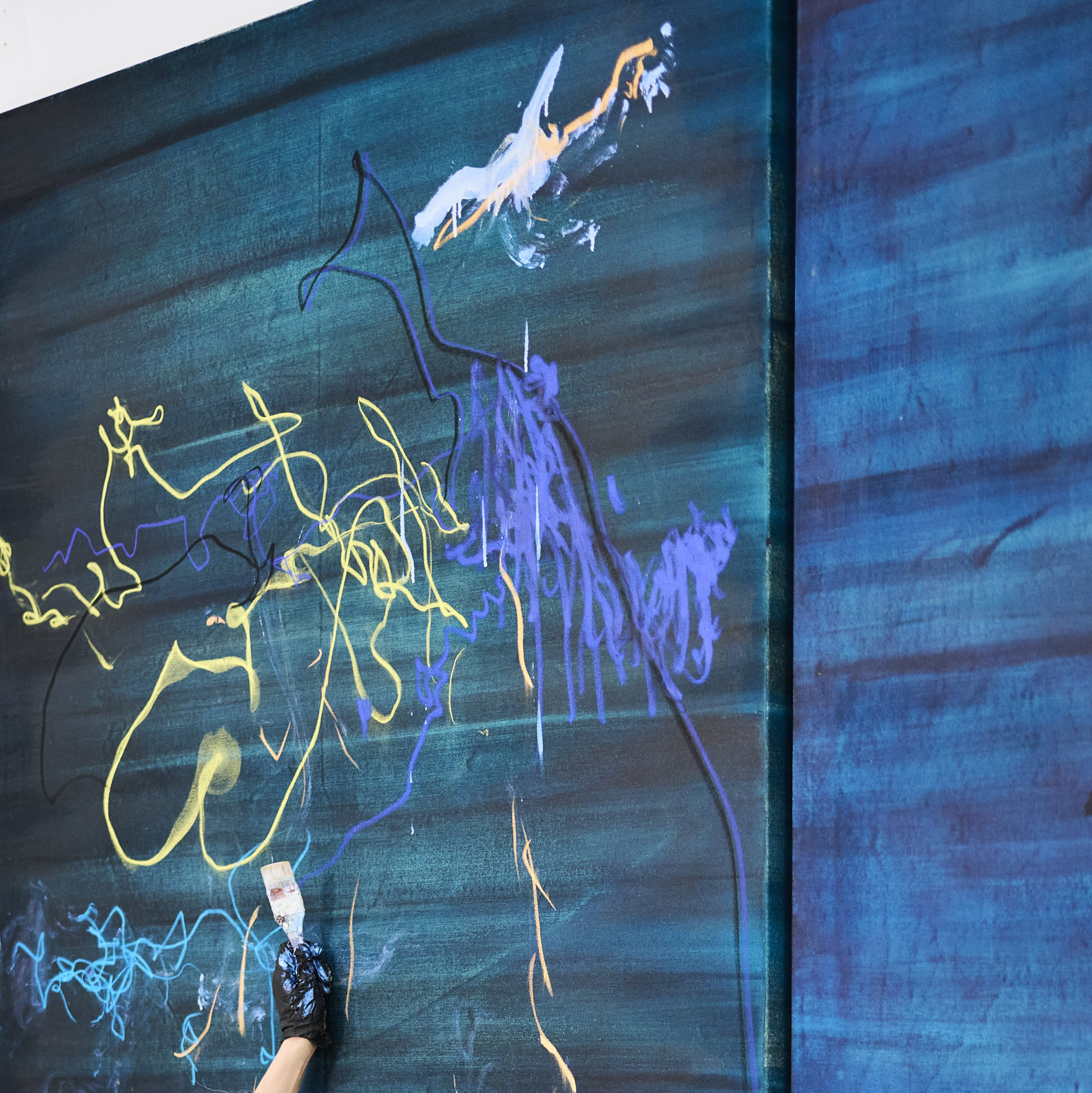 Claire and Peter have been collaborating since 2021, exploring their shared interest in painting and musicking as embodied, entangled movement.