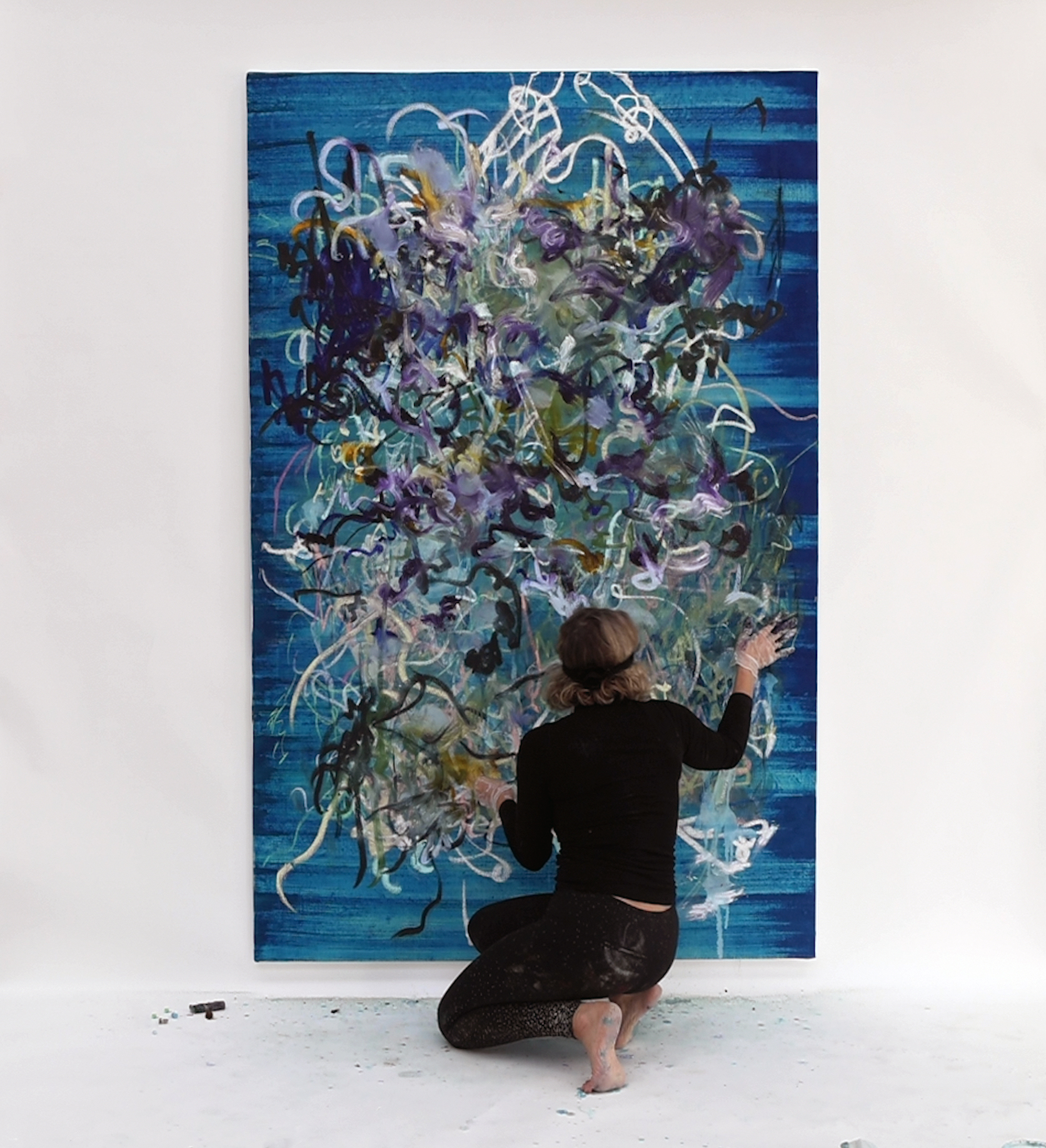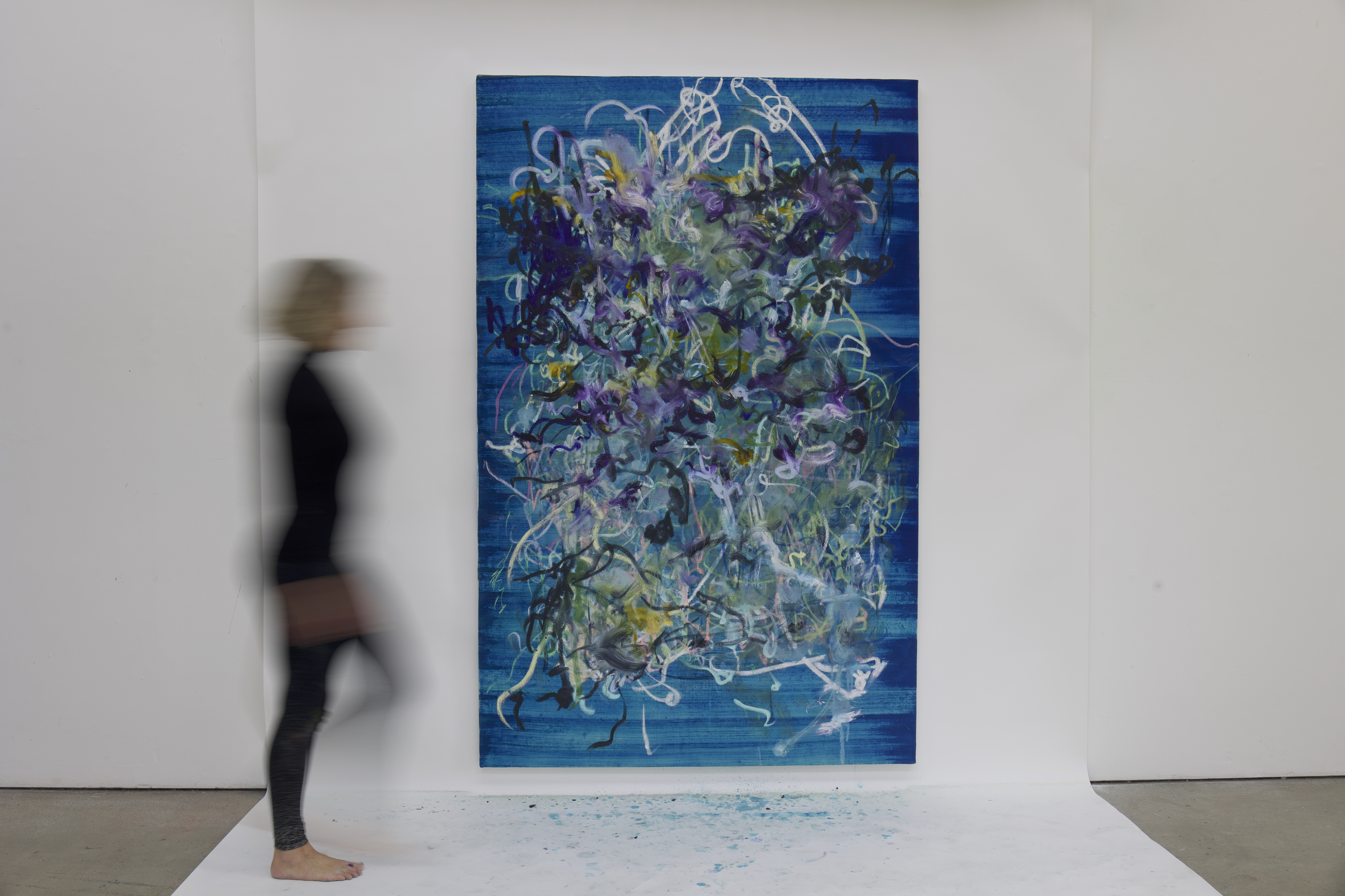 This work is the result of a performance combining automatic writing, active imagination, and contact improvisation into a continuous, embodied action. Working blindfolded on the canvas, I explored balance, tension, and resolution through a range of gestural mark-making.