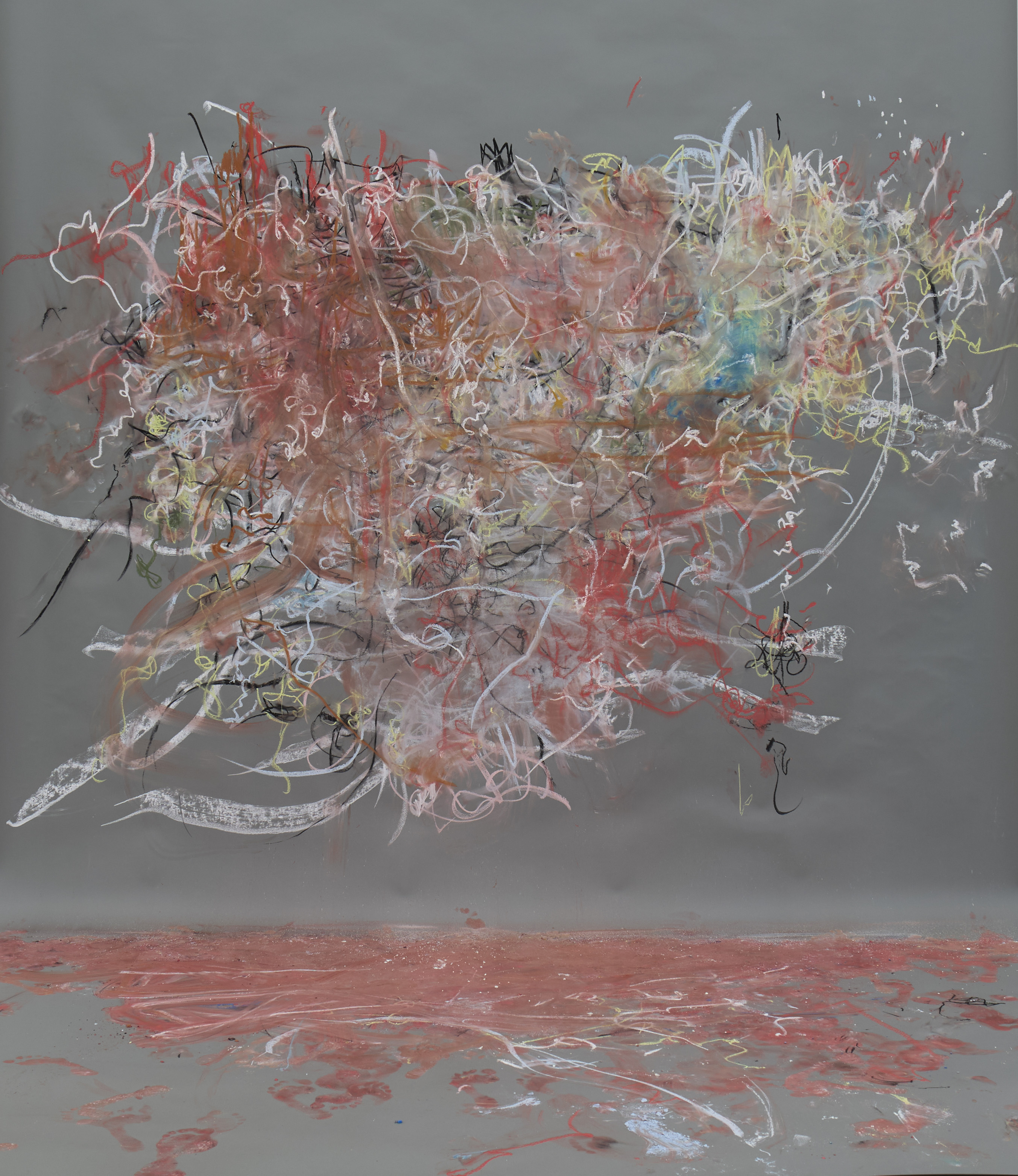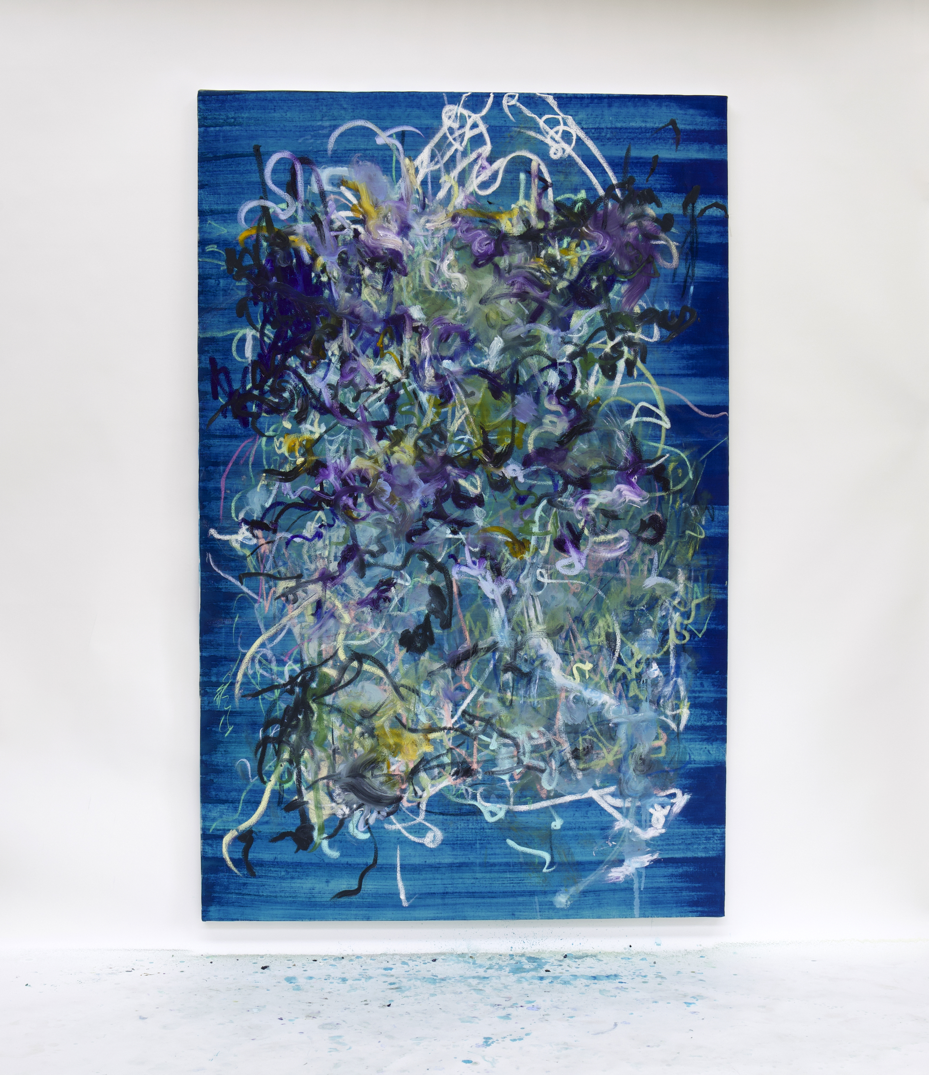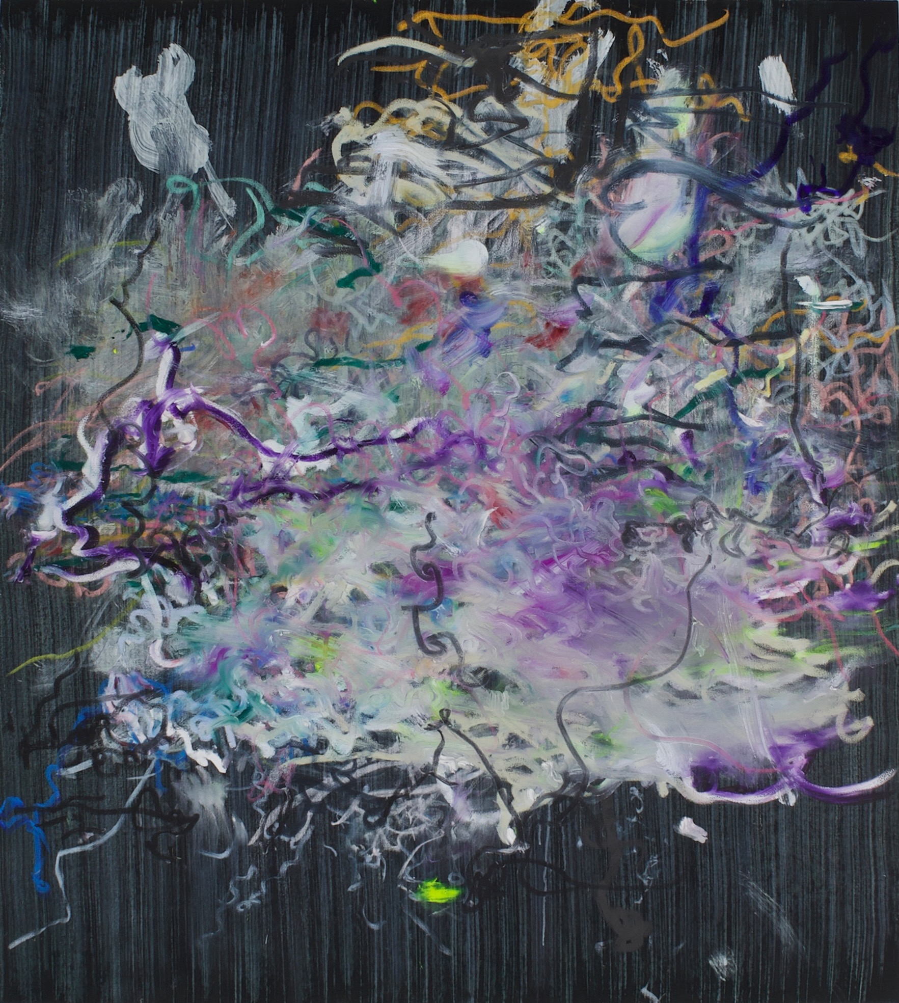 Oil, fabric painting, oil paint sticks and watercolour on canvas