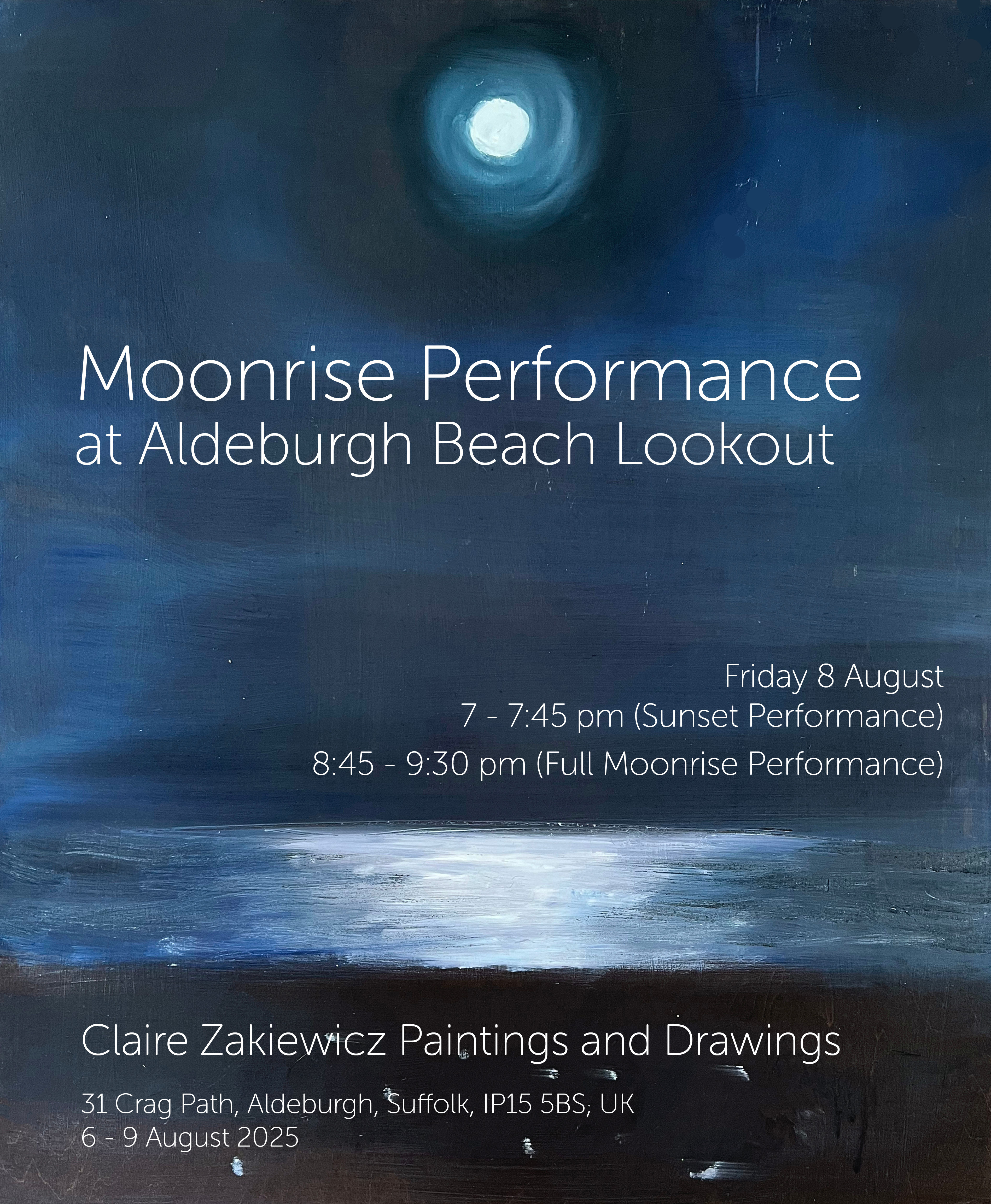 Open House Claire Zakiewicz has been invited to undertake a one-week intensive residency at the Aldeburgh Beach “Lookout,” from July 22 - 28, 2019. Located in the English seaside town in Suffolk, the isolated tower provides a unique opportunity to engage with the iconic cultural landscape and surrounding waters. Film Projections: The Primacy of Movement "One, two, three, four’ the beats of Philip Glass’s opera Einstein on the Beach measure out time. Time is the heart beat of the universe, towards death, the nemesis of creativity." Caroline Wiseman